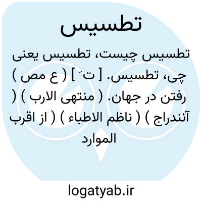 تطسیس. [ ت َ ] ( ع مص ) رفتن در جهان. ( منتهی الارب ) ( آنندراج ) ( ناظم الاطباء ) ( از اقرب الموارد ). یقال: ماادری این طسس هو؛ ای ذهب. ( منتهی الارب )؛ نمیدانم به کجا رفته است او. ( ناظم الاطباء ).