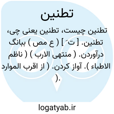 لغت نامه دهخدا تطنین. [ ت َ ] ( ع مص ) ببانگ درآوردن. ( منتهی الارب ) ( ناظم الاطباء ). آواز کردن. ( از اقرب الموارد ).