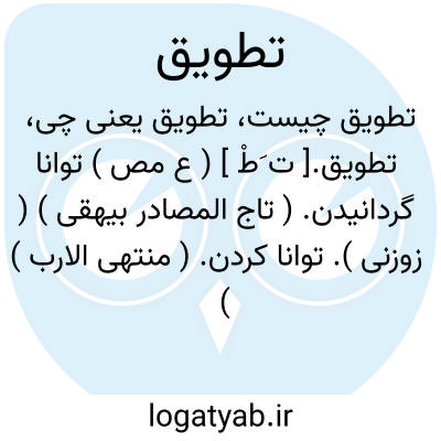 تطویق.[ ت َطْ ] ( ع مص ) توانا گردانیدن. ( تاج المصادر بیهقی ) ( زوزنی ). توانا کردن. ( منتهی الارب ) ( آنندراج ) ( ناظم الاطباء ) ( از اقرب الموارد ): طوقنی اﷲ اداء حقه؛ توانا کند مرا خدای بر ادای حق او و یا توانا کرد. ( منتهی الارب ) ( ناظم الاطباء ). || راضی شدن و اجازت دادن و آسان نمودن، لغتی است در تطویع. ( منتهی الارب ) ( ناظم الاطباء ) ( از اقرب الموارد ). || تکلیف دادن کسی را بر چیزی که فوق طاقت وی باشد. ( از منتهی الارب ) ( از ناظم الاطباء ). تکلیف کردن به چیزی. ( آنندراج ). تکلیف کردن ایشان را. ( از اقرب الموارد ). مکلف به فوق طاقت کردن. ( یادداشت مرحوم دهخدا ). || طوق دار گردانیدن. ( زوزنی ). در گردن کردن. ( ترجمان جرجانی ترتیب عادل بن علی ). گردن بند پوشانیدن. ( منتهی الارب ) ( ناظم الاطباء ) ( از اقرب الموارد ). طوق در گردن کسی کردن. ( آنندراج ). || والی گردانیدن و امین ساختن. ( منتهی الارب ) ( ناظم الاطباء ). || فرمانبردار گردانیدن. ( آنندراج ).
