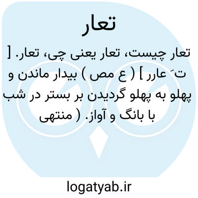 تعار. [ ت َ عارر ] ( ع مص ) بیدار ماندن و پهلو به پهلو گردیدن بر بستر در شب با بانگ و آواز. ( منتهی الارب ) ( ناظم الاطباء ) ( آنندراج ). بیداری و عبارت اساس «برخاستن از خواب است با گفتاری ». ( از اقرب الموارد ).