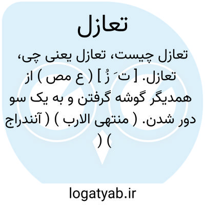 تعازل. [ ت َ زُ ] ( ع مص ) از همدیگر گوشه گرفتن و به یک سو دور شدن. ( منتهی الارب ) ( آنندراج ) ( ناظم الاطباء ) ( از اقرب الموارد ).