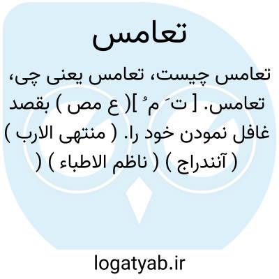 تعامس. [ ت َ م ُ ]( ع مص ) بقصد غافل نمودن خود را. ( منتهی الارب ) ( آنندراج ) ( ناظم الاطباء ) ( از اقرب الموارد ). || مشتبه گذاشتن بر دیگران کار خود را و نادانسته آوردن. ( منتهی الارب ) ( ناظم الاطباء ) ( از اقرب الموارد ).