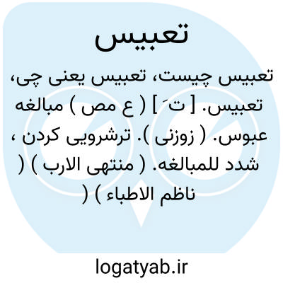 تعبیس. [ ت َ ] ( ع مص ) مبالغه عبوس. ( زوزنی ). ترشرویی کردن، شدد للمبالغه. ( منتهی الارب ) ( ناظم الاطباء ) ( آنندراج ). ترشروئی کردن و درکشیدن لبها را.( از اقرب الموارد ). درهم کشیدن ابروان و روی ترش کردن. ( از اقرب الموارد ).