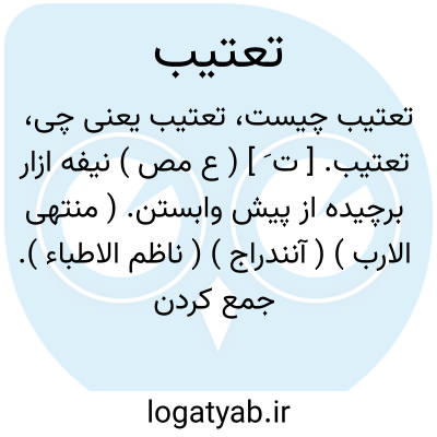 تعتیب. [ ت َ ] ( ع مص ) نیفه ازار برچیده از پیش وابستن. ( منتهی الارب ) ( آنندراج ) ( ناظم الاطباء ). جمع کردن نیفه شلوار و درهم پیچیدن آن از پیش. ( از اقرب الموارد ). || آستانه در ساختن. ( منتهی الارب ) ( آنندراج ) ( ناظم الاطباء ) ( از اقرب الموارد ). || درنگ کردن مرد. ( از اقرب الموارد ).