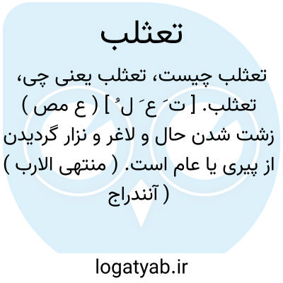 تعثلب. [ ت َ ع َ ل ُ ] ( ع مص ) زشت شدن حال و لاغر و نزار گردیدن از پیری یا عام است. ( منتهی الارب ) ( آنندراج ) ( ناظم الاطباء ) ( از اقرب الموارد ).