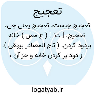 تعجیج. [ ت َ ] ( ع مص ) خانه پردود کردن. ( تاج المصادر بیهقی ). از دود پر کردن خانه و جز آن، یقال:عجج البیت دخاناً و من الدخان. ( منتهی الارب ) ( ناظم الاطباء ) ( از آنندراج ). پر کردن خانه از دود. ( از اقرب الموارد ). || برانگیختن باد غبار را. ( منتهی الارب ) ( ناظم الاطباء ) ( از اقرب الموارد ). || برانگیختن باد چیزی را. ( از اقرب الموارد ).