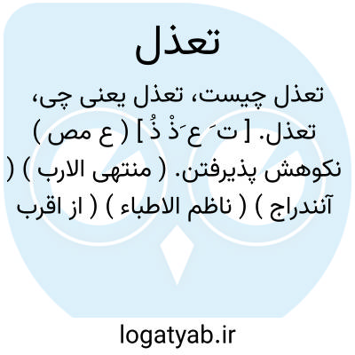 تعذل. [ ت َ ع َذْ ذُ ] ( ع مص ) نکوهش پذیرفتن. ( منتهی الارب ) ( آنندراج ) ( ناظم الاطباء ) ( از اقرب الموارد ). || اعتاب. ( اقرب الموارد ).