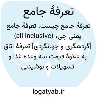 {all inclusive} [گردشگری و جهانگردی] تعرفۀ اتاق به علاوۀ قیمت سه وعده غذا و تسهیلات و نوشیدنی های مشخص متـ. جامع