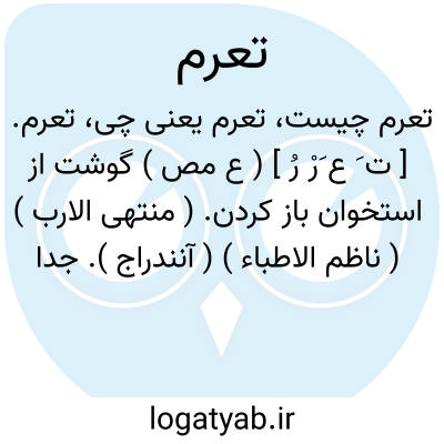 تعرم. [ ت َ ع َرْ رُ ] ( ع مص ) گوشت از استخوان باز کردن. ( منتهی الارب ) ( ناظم الاطباء ) ( آنندراج ). جدا کردن گوشت از استخوان. ( از اقرب الموارد ).