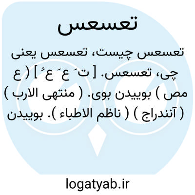 تعسعس. [ ت َ ع َ ع ُ ] ( ع مص ) بوییدن بوی. ( منتهی الارب ) ( آنندراج ) ( ناظم الاطباء ). بوییدن چیزی. ( از اقرب الموارد ). || به شب شکار جستن گرگ و جز آن. ( منتهی الارب ) ( آنندراج ) ( ناظم الاطباء ). شکار جستن گرگ به شب. ( از اقرب الموارد ).