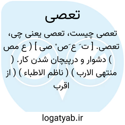 تعصی. [ ت َ ع َص ْ صی ] ( ع مص ) دشوار و درپیچان شدن کار. ( منتهی الارب ) ( ناظم الاطباء ) ( از اقرب الموارد ). || نافرمانی کردن و عناد ورزیدن. ( از اقرب الموارد ).