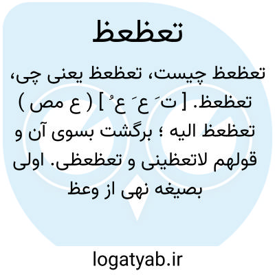تعظعظ. [ ت َ ع َ ع ُ ] ( ع مص ) تعظعظ الیه؛ برگشت بسوی آن و قولهم لاتعظینی و تعظعظی. اولی بصیغه نهی از وعظ یعظ و دومی به صیغه ٔامر از عظعظ؛ یعنی اندرز مکن من را و بر گرد بسوی نفس خود و آن را پند بده و تعظعظی بضم تاء نیز گفته اند؛ ای لایکن منک امر بالصلاح و ان تفسدی انت فی نفسک. ( از منتهی الارب ) ( ناظم الاطباء ) ( از اقرب الموارد ).