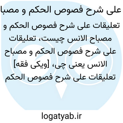 [ویکی فقه] تعلیقات علی شرح فصوص الحکم و مصباح الانس (کتاب). «تعلیقات علی شرح فصوص الحکم و مصباح الانس»، از آثار عرفانی امام خمینی، به زبان عربی است. موضوع کتاب، عرفان نظری و شرح مباحث مهمی چون صفات، اسماء و افعال الهی با نگرش عارفانه است.