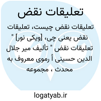 [ویکی نور] " تعلیقات نقض " تألیف میر جلال الدین حسینی اُ رموی معروف به محدث، مجموعه تعلیقات ایشان بر کتاب " نقض" از آثار قرن ششم هجری است که در دو مجلد منتشر شده است.