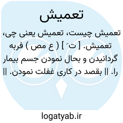 لغت نامه دهخدا تعمیش. [ ت َ ] ( ع مص ) فربه گردانیدن و بحال نمودن جسم بیمار را. || بقصد در کاری غفلت نمودن. || اصلاح و دور کردن عمش را. ( منتهی الارب ) ( ناظم الاطباء ) ( از اقرب الموارد ).