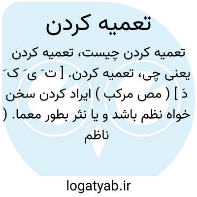 تعمیه کردن. [ ت َ ی َ ک َ دَ ] ( مص مرکب ) ایراد کردن سخن خواه نظم باشد و یا نثر بطور معما. ( ناظم الاطباء ). و رجوع به تعمیة شود.
