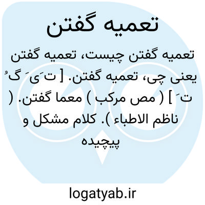 تعمیه گفتن. [ ت َی َ گ ُ ت َ ] ( مص مرکب ) معما گفتن. ( ناظم الاطباء ). کلام مشکل و پیچیده گفتن. گفتن کلامی که معانی آن پوشیده و ناصریح باشد. و رجوع به تعمیة و ماده قبل شود.