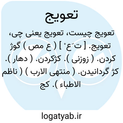 تعویج. [ ت َع ْ ] ( ع مص ) گوژ کردن. ( زوزنی ). کژکردن. ( دهار ). کژ گردانیدن. ( منتهی الارب ) ( ناظم الاطباء ). کج کردن. ( آنندراج ) ( از اقرب الموارد ). || به عاج ترکیب دادن چیزی را و مرصع ساختن به آن. ( منتهی الارب ) ( ناظم الاطباء ) ( از اقرب الموارد ).