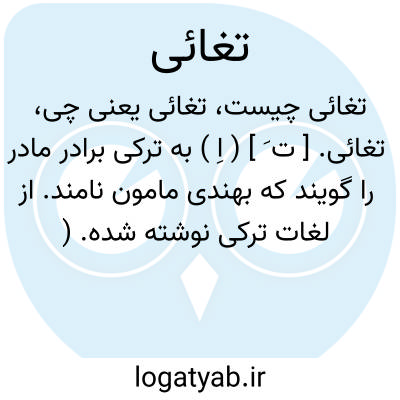 تغائی. [ ت َ ] ( اِ ) به ترکی برادر مادر را گویند که بهندی مامون نامند. از لغات ترکی نوشته شده. ( غیاث اللغات چ هند ).