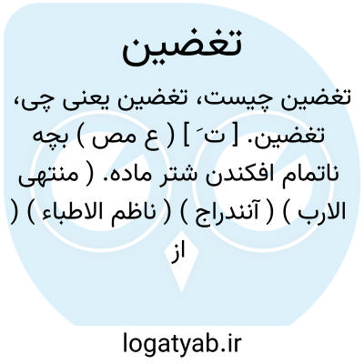 تغضین. [ ت َ ] ( ع مص ) بچه ناتمام افکندن شتر ماده. ( منتهی الارب ) ( آنندراج ) ( ناظم الاطباء ) ( از اقرب الموارد ). || آژنگ روی گردانیدن. ( منتهی الارب ) ( آنندراج ) ( ناظم الاطباء ). ترنجیدن و درکشیده شدن چیزی و فی الاساس: دخلت علیه فغضن لی من جبهته. ( از اقرب الموارد ). || از یک نوع سیر بازگردیدن ناقه: غضنت الناقه؛ راجعت. || همیشگی شدن باران آسمان. ( از اقرب الموارد ).