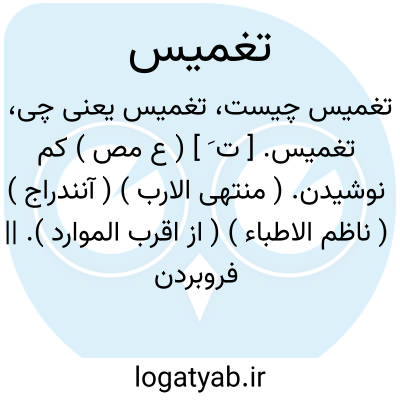 تغمیس. [ ت َ ] ( ع مص ) کم نوشیدن. ( منتهی الارب ) ( آنندراج ) ( ناظم الاطباء ) ( از اقرب الموارد ). || فروبردن چیزی در آب. || آب دادن شتر را و گذشتن. ( از اقرب الموارد ).