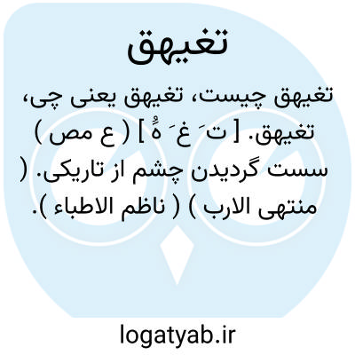 لغت نامه دهخدا تغیهق. [ ت َ غ َ هَُ ] ( ع مص ) سست گردیدن چشم از تاریکی. ( منتهی الارب ) ( ناظم الاطباء ).