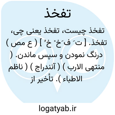 تفخذ. [ ت َ ف َخ ْ خ ُ ] ( ع مص ) درنگ نمودن و سپس ماندن. ( منتهی الارب ) ( آنندراج ) ( ناظم الاطباء ). تأخیر از امری. ( از اقرب الموارد ).