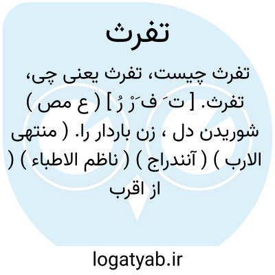 تفرث. [ ت َ ف َرْ رُ ] ( ع مص ) شوریدن دل، زن باردار را. ( منتهی الارب ) ( آنندراج ) ( ناظم الاطباء ) ( از اقرب الموارد ). || تفرق: شُد علیهم فتفرثوا. ( اقرب الموارد ).