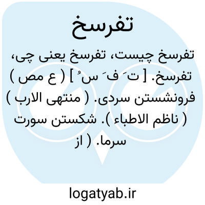 تفرسخ. [ ت َ ف َ س ُ ] ( ع مص ) فرونشستن سردی. ( منتهی الارب ) ( ناظم الاطباء ). شکستن سورت سرما. ( از اقرب الموارد ). || فرونشستن تب. ( منتهی الارب ) ( از ناظم الاطباء ) ( از اقرب الموارد ). || زائل شدن غم و اندوه. ( منتهی الارب ) ( ناظم الاطباء ). || انفراج و انکشاف اندوه. ( از اقرب الموارد ).