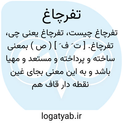 تفرچاغ. [ ت َ ف َ ] ( ص ) بمعنی ساخته و پرداخته و مستعد و مهیا باشد و به این معنی بجای غین نقطه دار قاف هم آمده است. ( برهان ) ( آنندراج ) ( از ناظم الاطباء ).
