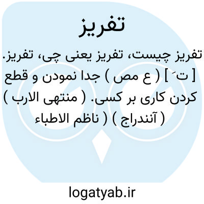 تفریز. [ ت َ ] ( ع مص ) جدا نمودن و قطع کردن کاری بر کسی. ( منتهی الارب ) ( آنندراج ) ( ناظم الاطباء ) ( از اقرب الموارد ).
