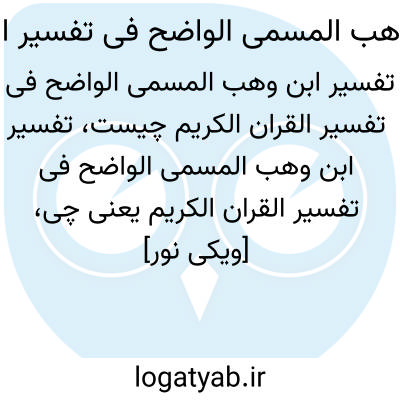 [ویکی نور] تفسیر ابن وهب المسمی الواضح فی تفسیر القرآن الکریم. تفسیر ابن وهب المسمی الواضح فی تفسیر القرآن الکریم، اثر ابومحمد عبداللّه بن محمد بن وهب دینوری (متوفای 308ق) است. این اثر، تفسیری ترتیبی است و شامل همه آیات قرآن کریم می شود. کتاب حاضر را جناب آقای احمد فرید، تحقیق و تصحیح و منابع مطالبش را در پاورقی ذکر کرده است.