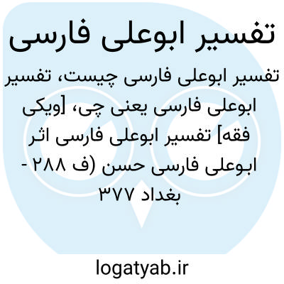[ویکی فقه] تفسیر ابوعلی فارسی اثـر ابـوعلی فارسی حسن (ف ۲۸۸ - بغداد ۳۷۷ ق) فرزند احمد فسوی نحوی معروف به ابوعلی فارسی از نحویین و مفسرین شیعة می باشد.