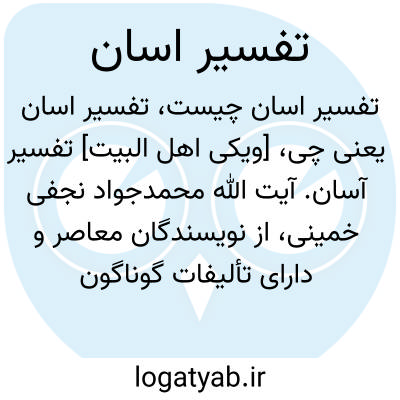 [ویکی فقه] تفسیر آسان (کتاب). نام کامل کتاب «تفسیر آسان منتخب از تفاسیر معتبر» و معروف به «تفسیر آسان» می باشد. تفسیری است فارسی، ساده و روان همراه با روایت، شامل جمیع قرآن بوده، و در عین اینکه خلاصه است، جامع نیز می باشد، یعنی حاوی موضوعات تفسیری و علوم قرآنی بوده و ملال آور نیست. آمیخته با بحثهای اخلاقی و اعتقادی و قابل استفاده برای عموم مردم می باشد.