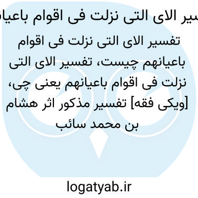 الای التی نزلت فی اقوام باعیانهم از ابومنذر هشام (م ۲۰۴ یا ۲۰۶ ق) فرزند محمد بن سائب بن بشر کلبی کوفی، از علمای شیعه و تبارشناس عصر خویش.ابوالعباس نجاشی می گوید او دارای مؤلفات بسیاری است سپس پنجاه عنوان از مؤلفات او را نام برده است. ابن ندیم در الفهرست قسمت الکتب المصنفة فی تفسیر القرآن نخست از تفسیر پدرش نام برده سپس می نویسد (کتاب تفسیر الای الذی نزل فی اقوام باعیانهم لهشام بن الکلبی).