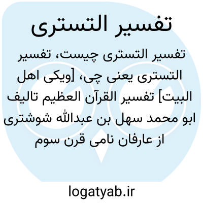 [ویکی فقه] تفسیر التستری (کتاب). «تفسیر التستری»، به زبان عربی، تفسیری است عرفانی در مورد برخی از آیات قرآنی که در قرن سوم هجری به دست ابو محمد، سهل بن عبدالله تستری نوشته شده است.