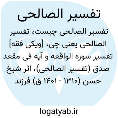 [ویکی فقه] تفسیر سوره الواقعه و آیه فی مقعد صدق (تفسیر الصالحی)، اثر شیخ حسن (۱۳۱۰ - ۱۴۰۱ ق) فرزند شیخ میرزاعلی نقی برغانی صالحی، از مشاهیر آل برغانی می باشد.