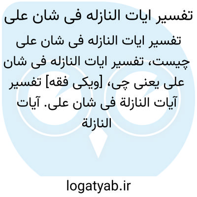 [ویکی فقه] تفسیر آیات النازله فی شان علی. آیات النازلة فی شان علی (علیه السّلام) اثر سیدعبدالحسین (۱۲۶۴ - ۱۳۲۴ ق) فرزند سیدعبداللّه موسوی لاری، از علمای فارس می باشد.