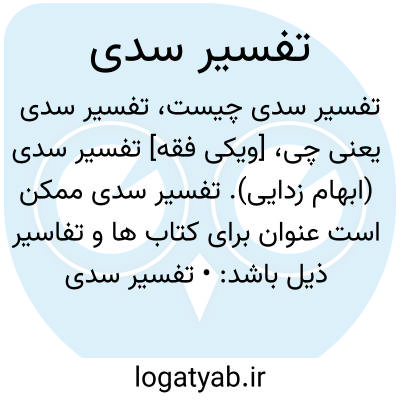 [ویکی فقه] تفسیر سدی (ابهام زدایی). تفسیر سدی ممکن است عنوان برای کتاب ها و تفاسیر ذیل باشد: • تفسیر سدی صغیر، اثـر محمد سدی صغیر فـرزنـد مروان بن عبدالله بن اسماعیل سدی کبیر بن عبدالرحمن بن ابی کریمه قرشی سدی کوفی، فقیه مفسر محدث• تفسیر سدی کبیر، اثر ابومحمد اسماعیل (۱۲۷ ق) فرزند عبدالرحمن القرشی هاشمی تـابـعـی کـوفـی مـعروف به سدی کبیر، از مفسرین امامیه و از اصحاب ائمه ...