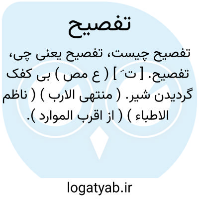 لغت نامه دهخدا تفصیح. [ ت َ ] ( ع مص ) بی کفک گردیدن شیر. ( منتهی الارب ) ( ناظم الاطباء ) ( از اقرب الموارد ).