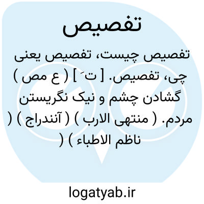 تفصیص. [ ت َ ] ( ع مص ) گشادن چشم و نیک نگریستن مردم. ( منتهی الارب ) ( آنندراج ) ( ناظم الاطباء ) ( از اقرب الموارد ). || سوار کردن نگین بر انگشتری. ( از اقرب الموارد ).