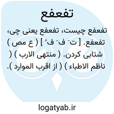 لغت نامه دهخدا تفعفع. [ ت َ ف َ ف ُ ] ( ع مص ) شتابی کردن. ( منتهی الارب ) ( ناظم الاطباء ) ( از اقرب الموارد ).