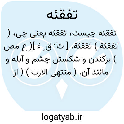 ( تفقئة ) تفقئة. [ ت َ ق ِ ءَ ]( ع مص ) برکندن و شکستن چشم و آبله و مانند آن. ( منتهی الارب ) ( از اقرب الموارد ) ( ناظم الاطباء ). || شکافتن. ( تاج المصادر بیهقی ) ( زوزنی ). || چشم کور کردن. ( تاج المصادر بیهقی ). کور ساختن.( منتهی الارب ) ( ناظم الاطباء ). رجوع به تفقّؤ شود.