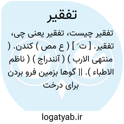 تفقیر. [ ت َ ] ( ع مص ) کندن. ( منتهی الارب ) ( آنندراج ) ( ناظم الاطباء ). || گوها بزمین فرو بردن برای درخت نشاندن. ( زوزنی ). حفره کندن برای غرس نهال خرما. ( از اقرب الموارد ). || جوی نهال کندن. ( منتهی الارب ) ( ناظم الاطباء ) ( آنندراج ). || سوراخ کردن مهره و جز آن. ( منتهی الارب ) ( آنندراج ) ( ناظم الاطباء ) ( از اقرب الموارد ).