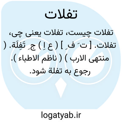لغت نامه دهخدا تفلات. [ ت َ ف ِ ] ( ع اِ ) ج ِ تَفِلَة. ( منتهی الارب ) ( ناظم الاطباء ). رجوع به تفلة شود.