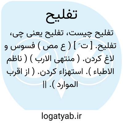 تفلیح. [ ت َ ] ( ع مص ) فسوس و لاغ کردن. ( منتهی الارب ) ( ناظم الاطباء ). استهزاء کردن. ( از اقرب الموارد ). || فریفتن. ( منتهی الارب ) ( ناظم الاطباء ). مکر کردن با کسی. ( از اقرب الموارد ).