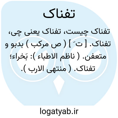 تفناک. [ ت َ ] ( ص مرکب ) بدبو و متعفن. ( ناظم الاطباء ): بَخراء؛ تفناک. ( منتهی الارب ).
