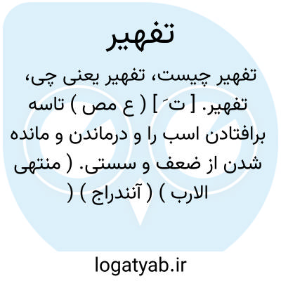 تفهیر. [ ت َ ] ( ع مص ) تاسه برافتادن اسب را و درماندن و مانده شدن از ضعف و سستی. ( منتهی الارب ) ( آنندراج ) ( ناظم الاطباء ) ( از اقرب الموارد ).