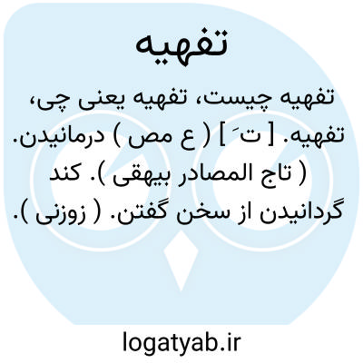 تفهیه. [ ت َ ] ( ع مص ) درمانیدن. ( تاج المصادر بیهقی ). کند گردانیدن از سخن گفتن. ( زوزنی ). درمانده گردانیدن. ( منتهی الارب ) ( آنندراج ) ( ناظم الاطباء ).