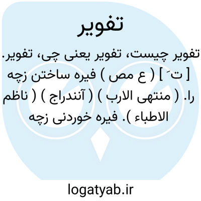 تفویر. [ ت َ ] ( ع مص ) فیره ساختن زچه را. ( منتهی الارب ) ( آنندراج ) ( ناظم الاطباء ). فیره خوردنی زچه که از دانه شنبلید و خرما و دیگر دانه ها پزند. ( آنندراج ). فیره ساختن، نُفساء یا نَفساء را. ( از اقرب الموارد ).